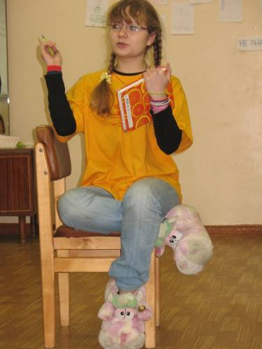 | Петрова опять всех грузит в своих знаменитых тапочках-мутантах с бубенчиками на сборе РСМ в 2008 году.(19.01.08) |